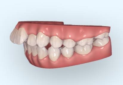 若上門牙萌發時角度外傾,或原本下顎位置較後縮,使下唇放鬆時放置在上門牙的內側,此時上門牙外傾會越嚴重,上顎前牙弓變窄。